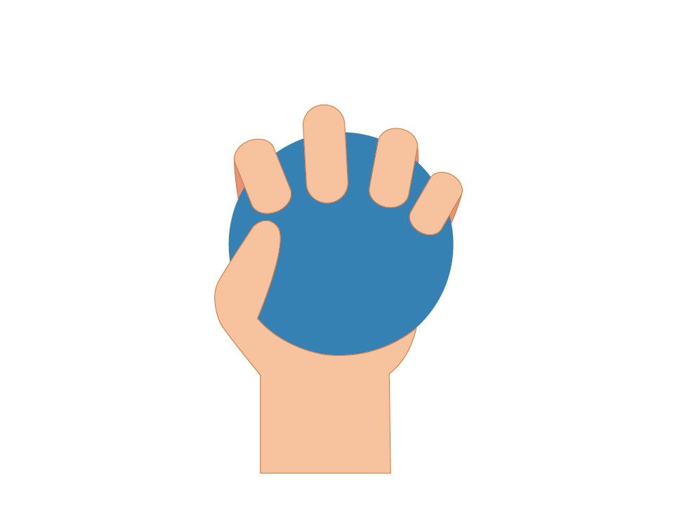 Squeeze a soft stress ball for 3–5 seconds, avoiding pain.